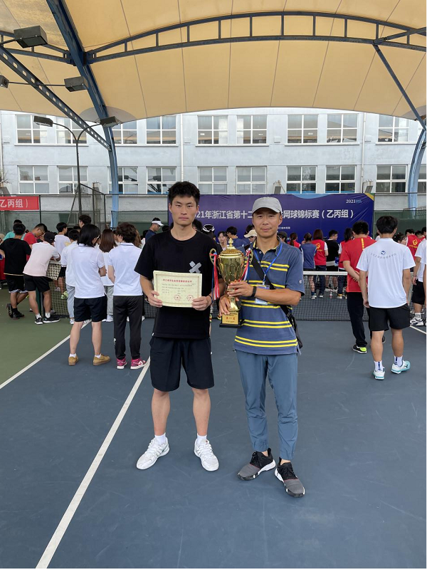 6月4日-6月10日,由浙江省教育厅、浙江省体育局组织的2021年浙江省大学生网球锦标赛(乙组)在浙江工贸职业技术学院举行。来自全省30所高校32支代表队的250名运动员同场竞技,经过7天的激烈角逐,我校商务系李云杰同学荣获男子单打冠军,并获得优秀运动员称号。