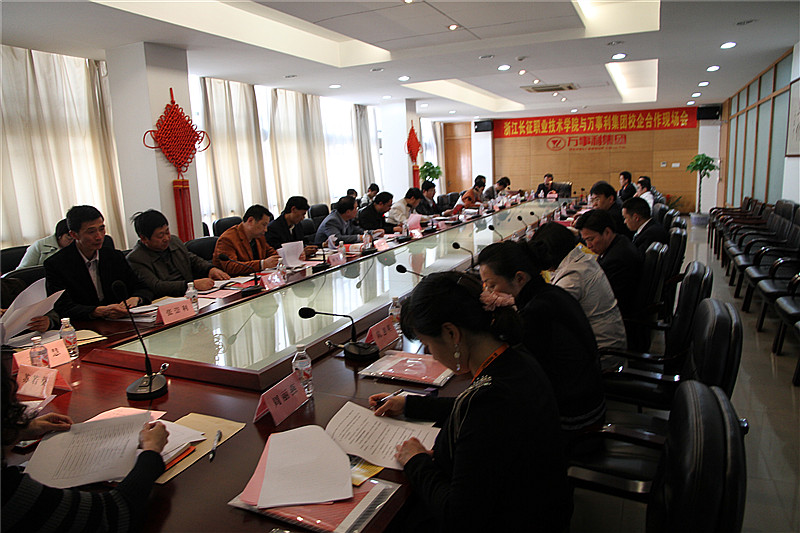 4月12日下午,学院在万事利集团有限公司召开首次校企合作现场会。学院执行院长吕振合、副院长杜宝山、王其军、教务处和各系负责人、校企合作处相关人员、管理咨询协会培训中心主任、管理系相关教研室主任、挂职锻炼教师和在企业顶岗实习的两名学生共19人参加了会议。万事利集团有限公司副总裁张建平、股份公司总经理文礼、丝绸科技公司总经理马廷方、丝绸礼品公司总经理滕俊楷、集团公司人力资源总监胡和平、集团总裁办主任余志伟及相关部门负责人参加了会议。会议由学院副院长王其军主持。会上,校企合作处负责人楼望通报了近期校企合作进展情况及工作安排;管理系主任李庆海介绍了管理系与万事利集团合作的进展情况;管理系挂职锻炼教师张雅琳介绍了在企业锻炼的感想;管理系工商企业管理专业学生龚大鸽介绍了顶岗实习的心得体会;万事利集团人力资源总监胡和平介绍了企业与学院的合作情况。学院执行院长吕振合为万事利集团张建平、文礼、马廷方、滕俊楷、胡和平颁发了客座教授聘书,副院长杜宝山为胡和平和周丽燕颁发了专业建设指导委员会成员聘书。