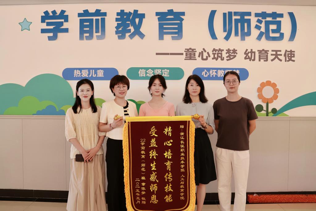 近日,“精心培育传技能,受益终生感师恩”的锦旗送到人文与教育学院,22学前教育(师范)专业学生章依梦以这种特别的方式,向母校表达深深的感恩之情。