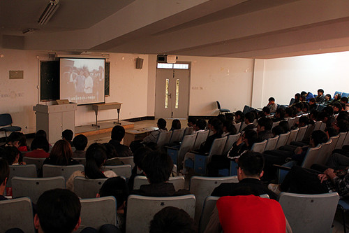 影片结束之后,由学院团委秘书处吴樑同学带领大家宣誓,“向雷锋同志学习,发扬公仆精神,发扬钉子精神,传承雷锋精神,争做四好少年,投身社会主义,共创和谐社会。”