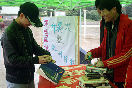 沐浴书海,香溢校园,我院第四届读书月如期到来。26日上午,由学生会学习部,图书馆联合举办的第四届文明修书暨读书月活动在图书馆广场前正式开幕。